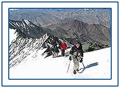 Approaching Stok Kangri, descend into the Stok Valley and trek up to the basecamp at 4900 metres.