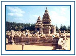 Mamallapuram, the city of Mamalla, is after the title of great Pallava ruler Narasimhavarman-I (AD 630-68). It was a sea-port during the time of Periplus (Ist century AD) and Ptolemy (AD 140) and many Indian colonists sailed to South-East Asia through this port town. While there is some evidence of architectural activity going back to the period of Mahendravarman-I (AD 600-30), the father of Mamalla, most of the monuments like rock-cut rathas, sculptured scenes on open rocks like Arjuna's penance, the caves of Govardhanadhari and ahishasuramardini,the Jala-Sayana Perumal temple (the sleeping Mahavishnu or Chakrin at the rear part of the Shore temple complex) are attributed to the period of Narasimhavarman-I Mamalla.